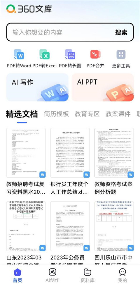 360文库拥有超8亿份文档资源,涵盖教育学习、职场办公、灵感创作等各类场景!AI写作能让文字妙笔生花,AIPPT更具无限创意,助力大家在工作学习与日常创作中领先一步!