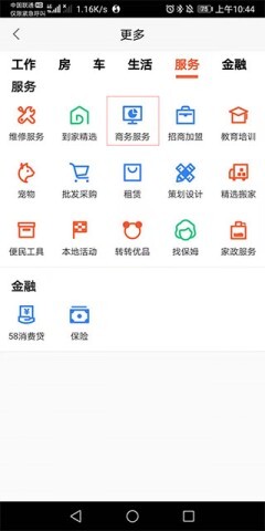 4、点击第一排第三个的商家服务进入;