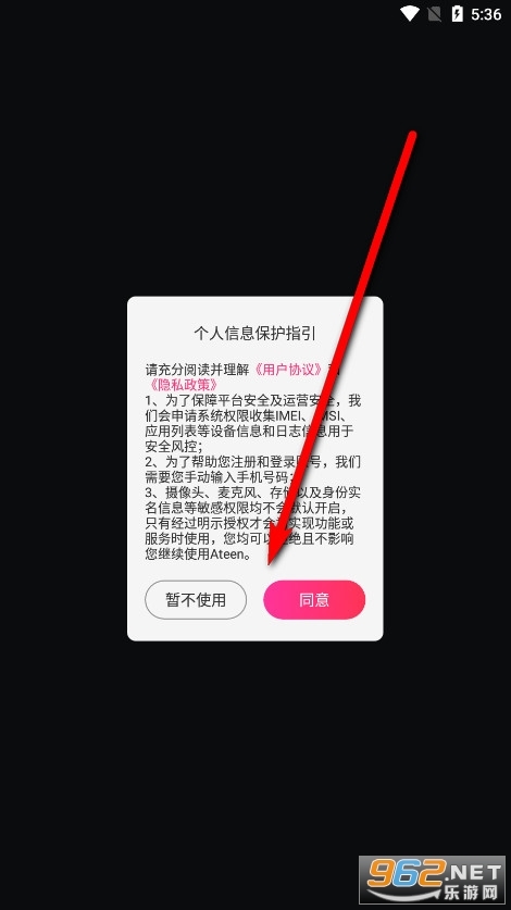 1、通过962乐游网安装打开,按照个人信息保护引导操作。