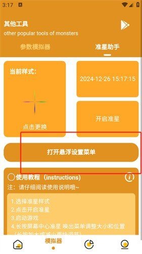 2、点击下方的模拟器,调整准星助手和屏幕分辨率,提升游戏体验。
