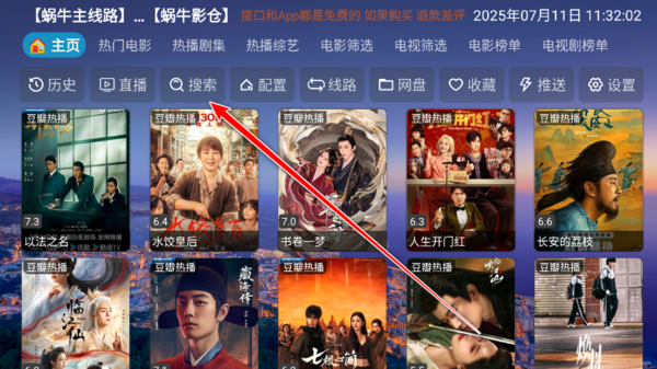 3.返回到首页,点击搜索。
