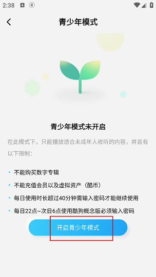 4、然后在打开的新窗口中,点击下方中的“开启青少年模式”按钮。