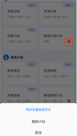2、清洁计划分为扫地和拖地两类,用户可对已有计划进行编辑、删除,也能点击新建清洁计划。