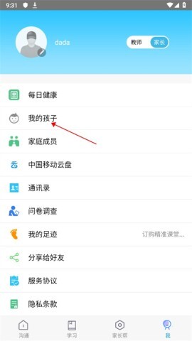 1. 在我的页面中,轻松点击“我的孩子”,为孩子的教育管理开个好头;