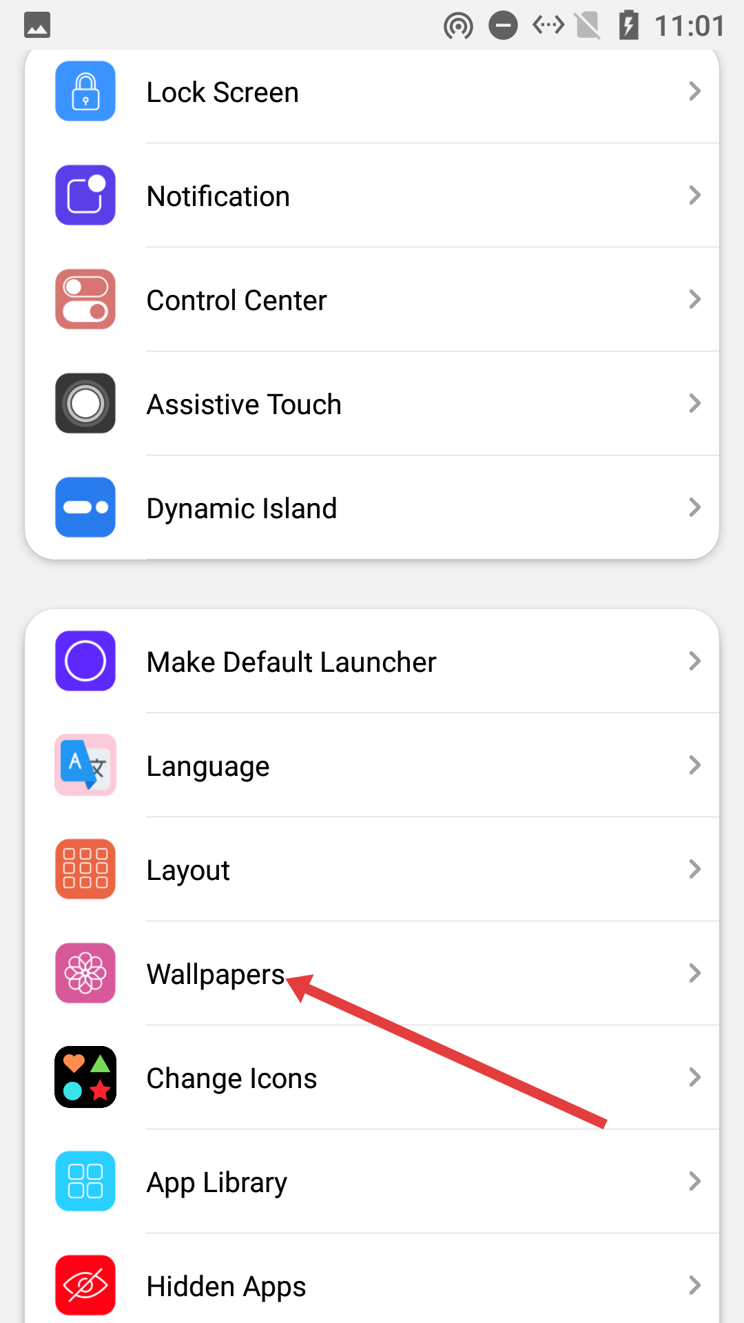 1、在设置列表里找到并点击【Wallpapers】选项,即可进入壁纸设置页面。