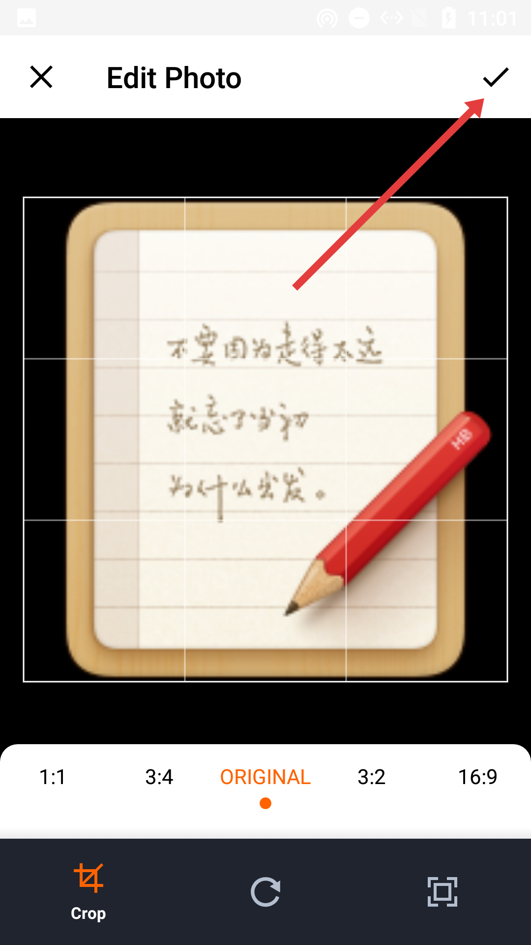 3、在【Edit-Photo】页面编辑好图片后,点击右上角的对勾按钮确认编辑。