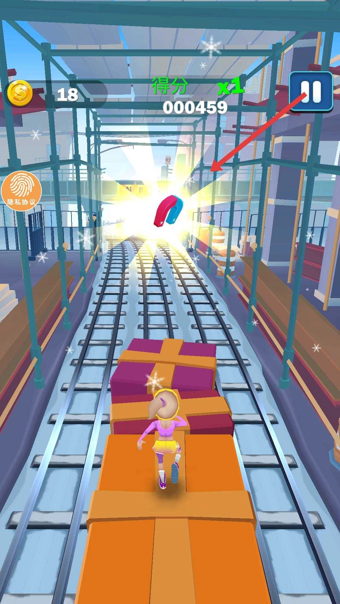 2、在奔跑过程中收集沿途的金币,同时留意道具,如磁铁,获取后可自动吸附周围金币,提升收集效率。