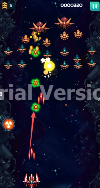 2. 击败特定敌人会掉落能量胶囊,收集足够数量可提升武器等级,最高可达八级并激活全屏范围的辅助攻击单位。