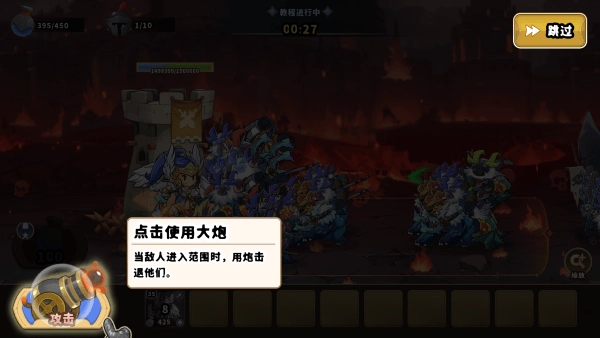 2、自家大炮拥有蓄力机制,等待能量条满后,点击即可发射强力炮弹,对敌方单位造成巨额伤害。