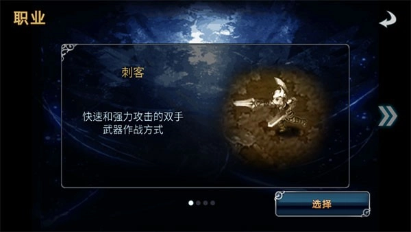 3、随后选择一个职业,游戏内提供饿了四大强力职业供玩家们自由挑选,分别为刺客,骑士,狂战士以及魔法师;