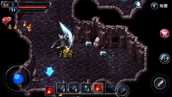 2、您可以触摸屏幕右边的攻击按钮攻击怪物;