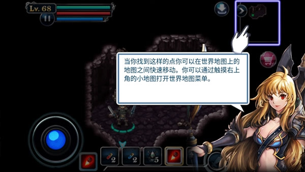 1、启动命运之石宝石版后,您可借助触摸屏幕左下角的虚拟键盘来操控角色移动;