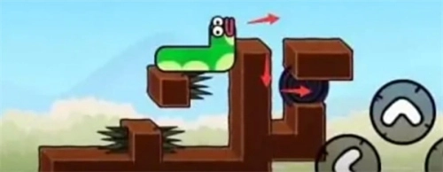 3. 最后一步,引导小蛇向右侧较高的平台移动,一直朝向黑洞前进,就能顺利通过贪吃的苹果蛇的第23关,过程相当简单。