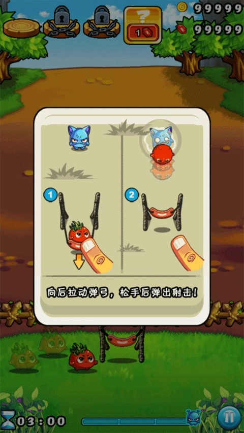 4、进入游戏后,玩法非常简单,玩家将需要通过手指拉动弹弓来进行射击。