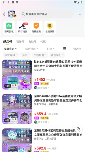 1、打开淘号玩,你会发现超多热门的游戏账号,并且支持买好包赔。