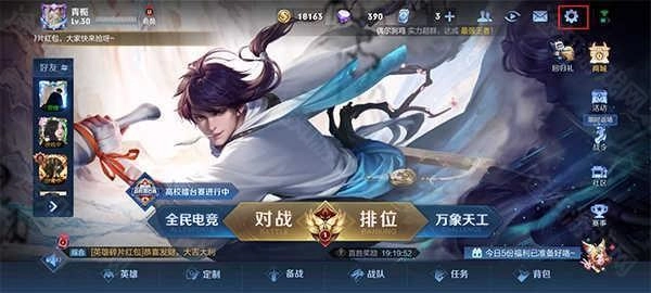 1、进入游戏主页后,点击右上角的【设置】图标按钮。