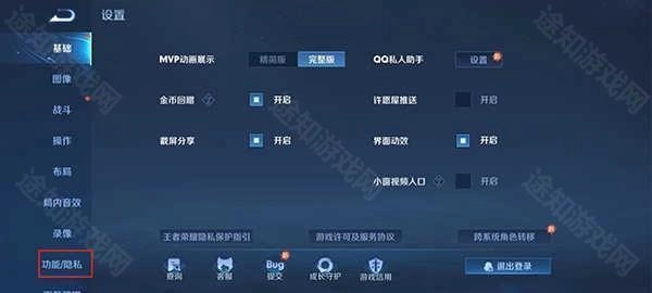 2、在设置功能中找到【功能/隐私】