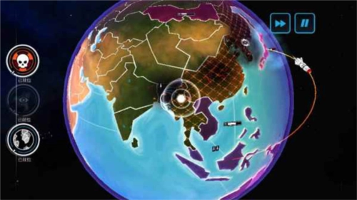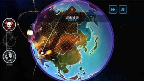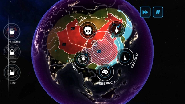 4、放大视图,点击地球上的其余势力,玩家可以选择直接攻击、研究、扩张拆除以及建造导弹等操作;