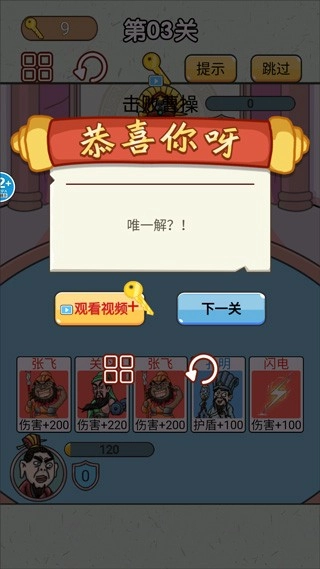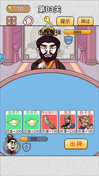 3、三国背景:以三国为背景,关卡挑战过程中能够让我们能够领略三国的独特魅力,提升英雄等级和技能,提高战斗力。