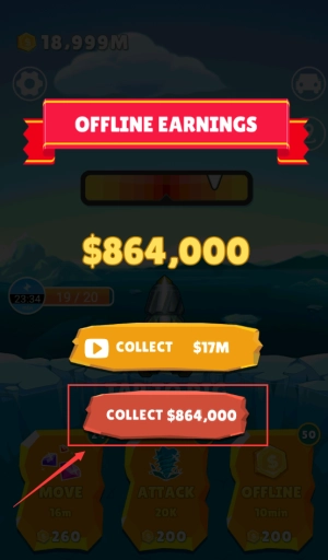 2、点击红框COLLECT按钮,领取864000美元离线收益。