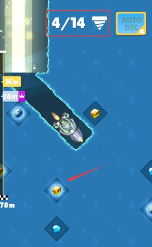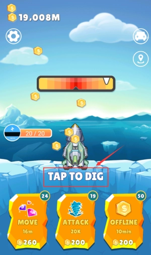 3、点击红框TAP TO DIG区域,控制飞船开始挖掘。