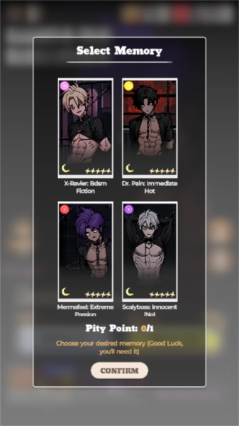 4、模拟恋与深空真实的抽卡机制,包含限时 UP 池、新手折扣池、常驻池等不同卡池。