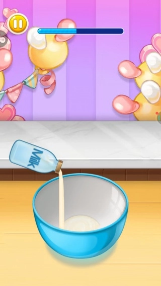 1、进入游戏,模拟真实的制作蛋糕的方式,从倒牛奶开始;
