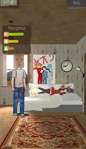 1、游戏画面虽显简陋,却与游戏场景颇为契合,门口堆积的垃圾和凌乱的床铺,也生动勾勒出角色的宅男特质。