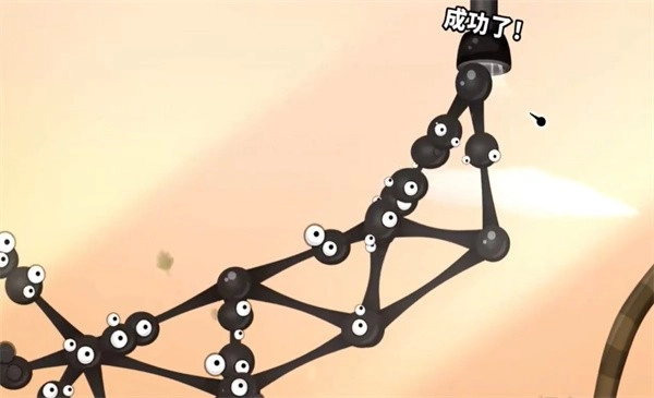 1、玩家需要借助粘粘球搭建一座大桥,要记得把跨度拉大一些,而且游戏里加入了重力机制,粘粘球会直接向下垂落。