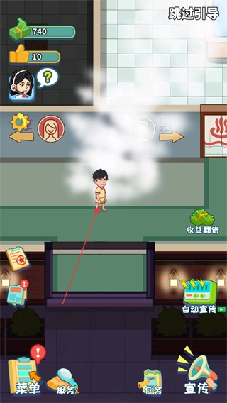 4、设施解锁后,等待客人进入浴室消费,可通过自动宣传等功能吸引更多客人。