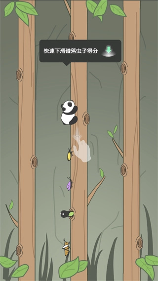 熊猫爬树手机版呈现经典的休闲闯关玩法,游戏里设有三棵树,玩家需操控小熊猫在这三棵树之间跳跃,避开持续向上爬的各类虫子,确保不被虫子碰到。