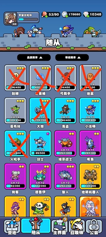 小法师(可以合成狐狸,灯神),炮车(可以合成忍者猫,招财猫),海贼(前期可以用来打控制,后面就出售或者合成紫卡)