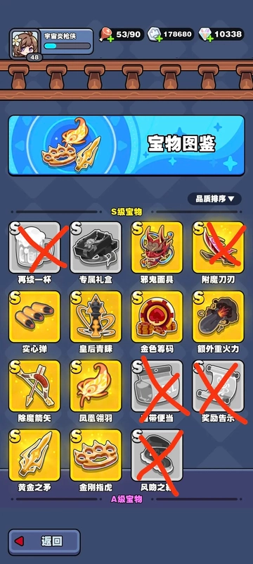 宝物第一个s是随机的,宝物新人推荐指虎,其他暂时不推荐,宝物周期也比较长,看自己的需要选择合适的宝物,后期宝物推荐,战力宝物推荐筹码,除魔弓箭,反重力