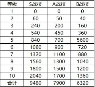 S战技消耗>A战技消耗>B战技消耗,并且战技提升到5级是比较容易的,因此在开荒前期战技点不够充裕的情况下,我们优先把所有战技升到5级达到收益最大化。