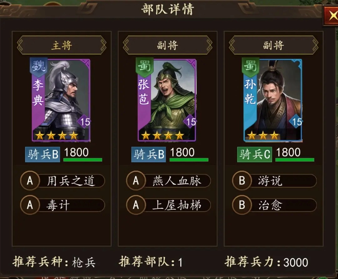 后续:资源缺什么我们就采集什么,相较于开荒的头两天这次我们就可以随意一点了,但主要还是以采集石料为主,前期石料的耗费量还是很高的。这时候我们的第一队武将也可以去准备打架了,至于第二队和第三队武将不用过于着急,毕竟资源还是要积累的,所以先把第一队武将完成3武将觉醒,9个战法都升级为10级为目标,有了更多资源再去培育第二队跟第三队武将。