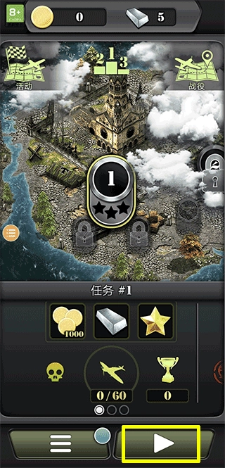 进入空袭2后,找到黄色方框里的按键并点击它。