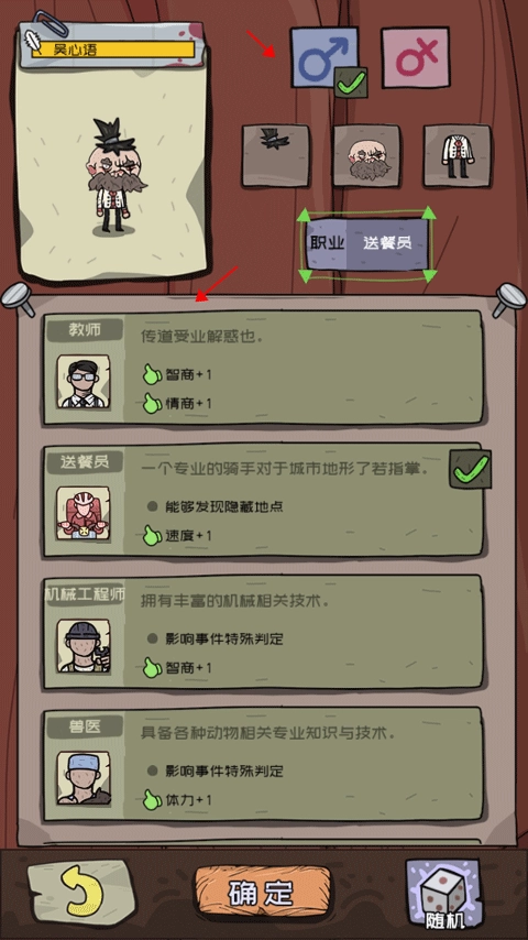 6、开始设置角色的性别和形象,以及角色的职业,不同职业所得到的能力都不一样,设置好后点击确定。