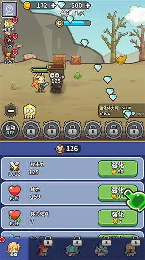 3、强化战斗力来源均需要金币来提升强化,金币通过打怪获得,提升英雄装备、技能、宠物均需要通过召唤获得高等级效果。