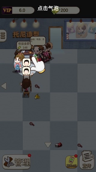 一般顾客都会提前想好要理的发型,点击顾客头上的气泡,理发师便会前往理发。