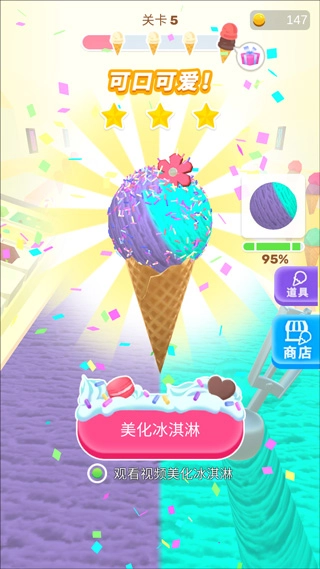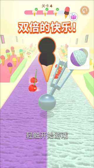 1、这款游戏的操作非常简单,很容易上手,只需点击屏幕就能操控雪糕勺的移动;