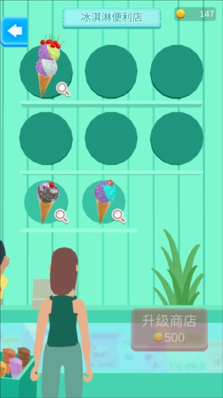 7、制作好的冰淇淋会放在小店出售,赚取的金币可以用来升级店面