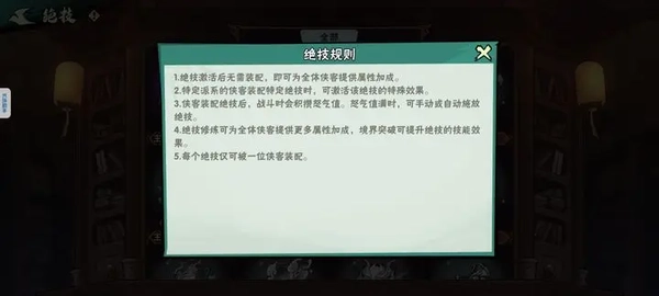 绝技系统,有四点值得注意: