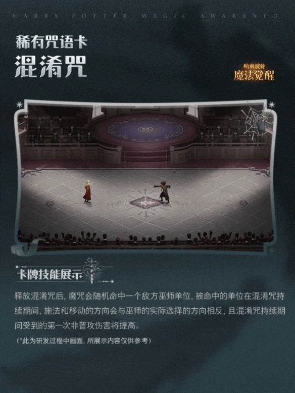 -释放混淆咒后,魔咒会随机命中一个敌方巫师单位,被命中的单位在混淆咒持续期间,施法和移动的方向会与巫师的实际选择的方向相反,且混淆咒持续期间受到的第一次非普攻伤害将提高。