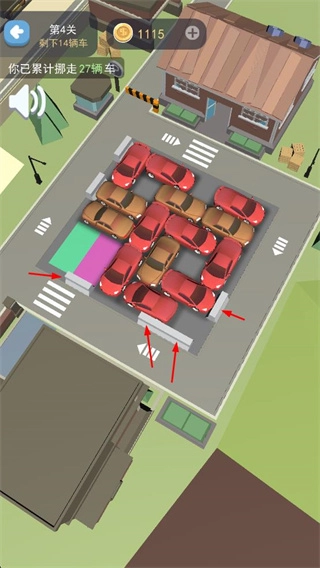 3、成功移走所有车辆后,可获取金币收益,积累金币用于解锁新关卡或提升游戏内功能。