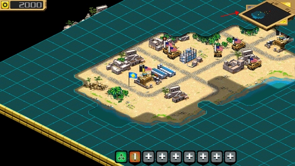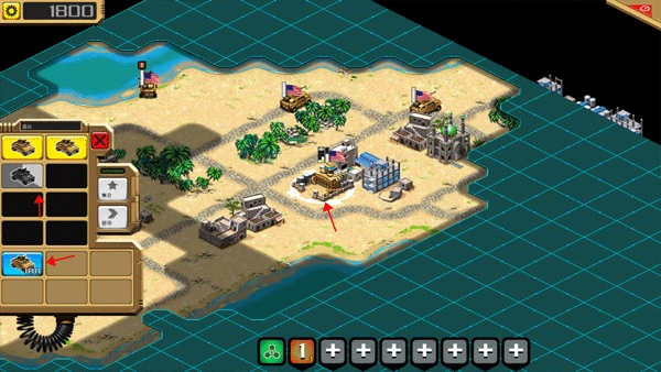 6、点击中间那个基地,会出现多个功能选项,点击下方的坦克,这时候上方也就出现了一个新的坦克。