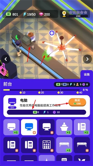 4、在综合服务区,升级维修无人机等设施,提升服务能力,朝着打造高效办公帝国的目标努力。