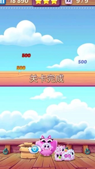 2.关卡类型丰富多样,从传统的消除所有泡泡,到收集特定物品,再到解救被困的小猫同伴,玩家永远不会感到单调;