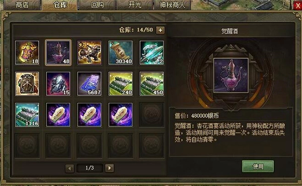 11、功勋杜康,建议不要留存,每积累两个功勋榜就使用一次,使用前可以先点击一下宝石或者觉醒石,尽量选择在整点时刻或者国战前后的时间段进行操作。