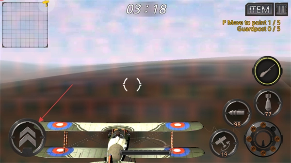 4、通过屏幕左下方虚拟摇杆控制飞机方向和飞行姿态,持续完成任务目标。