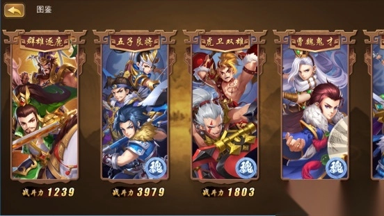 图鉴中有各位主公熟知的五子良将,五虎上将等等。当主公获取这些武将时即可在图鉴中激活。